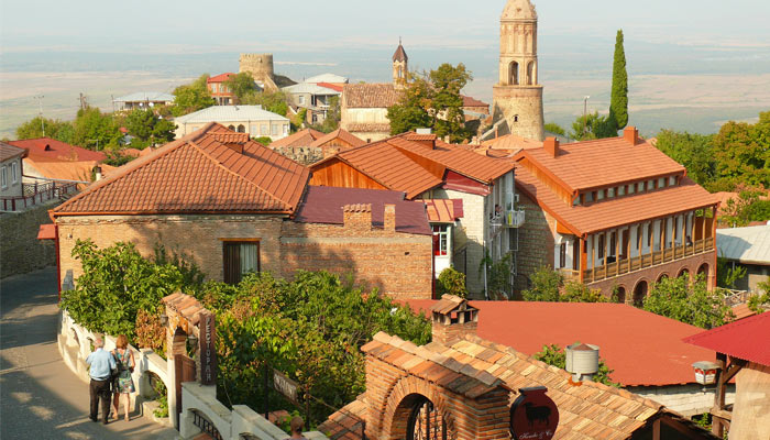 As you continue your journey, stop off at the Bodbe Nunnery, a spiritual place closely associated with Saint Nino. A few kilometers further on, you will find Sighnaghi, the so-called “city of love.” With its Mediterranean alleys, colorful houses, and magnificent panorama over the Alazani Valley, the town invites you to stroll around.