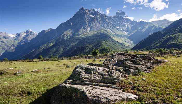 Today’s stage of your Self Guiding Hiking Tour in Georgia is both challenging and incredibly rewarding. You’ll set out on a long but unforgettable hike that brings you closer than ever to the dramatic peaks of Svaneti. Along the way, you’ll enjoy sweeping views of snow-covered summits and the towering Mount Ushba, one of the most iconic mountains in the Caucasus with its striking glacier.